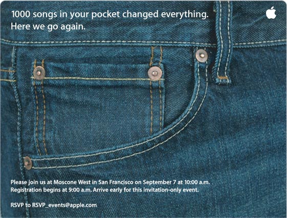 と書かれている。この内容から、新製品は4GB程度のiPod ファミリーと予想されるわけだ。となると、容量がアップしたshuffleか、フラッシュメモリになるmini辺りが予想される。ただ、これだけじゃモス コーンセンターでのイベントには役不足な気も。changed everything とは言えない感じ。