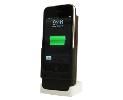 容量だけでなく、使い勝手も大きなポイント。iVの底面には、iPhoneと同じく、底面にドックコネクタが付いており、iPhoneを装着したままiPhone付属のケーブルで充電が可能。また、初代iPhone用のドックにそのまま差し込めます。