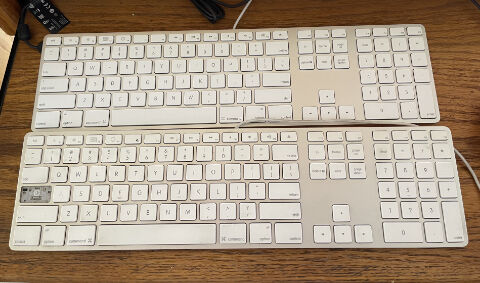 本日まで使っていたキーボード、もう10年は使っています。最近は、めっきりキータッチが悪くなっているのを感じていました。とは言え、反応しないキーもないので、交換する踏ん切りもつかず。と思っていたら、caps lockキーが外れてしまいました。見ると、バタフライ構造の樹脂部分の突起が欠けています。手持ちパーツを使って復活させられないこともないのですが、キータッチから考えても、さすがに交換時期でしょう。実は、同じタイプの新品を箱入りで保管していました。これも、10年ほどは保管しているはず。