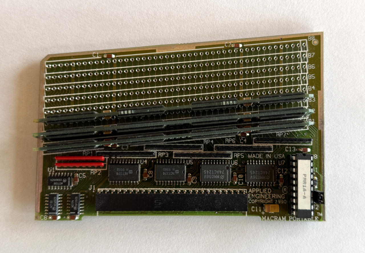 APPLIED Engineering のMACRAM Portable 3MBです。合計4MB。Macintosh Plus の最大メモリが4MBですので、それでもなかなかのメモリ容量だと思います。